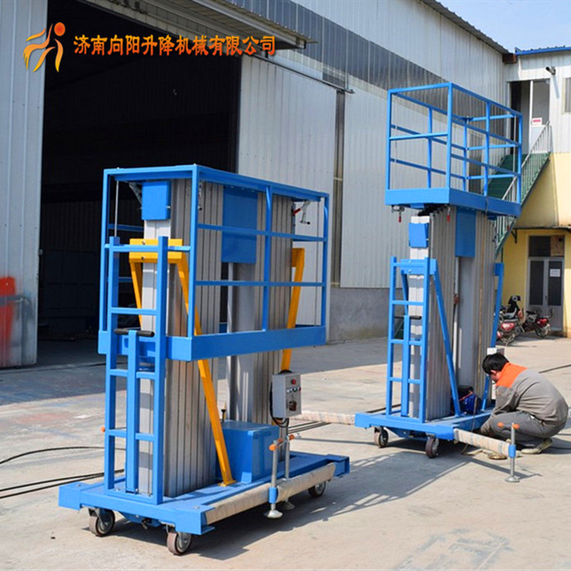 1、產(chǎn)品簡介:雙桅桿鋁合金升降平臺系列其價格比吊臂式升降臺要便宜50%,除了價格便宜外,雙人升降臺系列在狹窄通道的靈活性,使其能完成許多吊臂式升降臺不能完成的工作。可單人或雙人操作,寬闊的平臺提供足夠的空間,便于操作人員作業(yè),擺放工具。具有最剛硬的升降桅柱系統(tǒng),其特征是:高強(qiáng)度的鋁合金桅桿,互鎖系統(tǒng),可伸縮柱及安全系數(shù)大于10:1的高強(qiáng)度的起重鏈,并設(shè)有鋼絲安全保護(hù)系統(tǒng)可用來加強(qiáng)力度及可靠性能,維修方便,其焊接式高強(qiáng)度的鋼底座適合于惡劣的工作環(huán)境。 2、產(chǎn)品用途:雙桅桿鋁合金升降平臺外形美觀、尺寸小、重量輕、操作靈活方便;上下兩套控制升降系統(tǒng),升降平穩(wěn),安全可靠。適用于商場、賓館、飯店、室內(nèi)裝修、布展、空間燈線、管路、門窗的維修、保養(yǎng)及清潔,適用于面積或空間狹窄工房內(nèi)的空間作業(yè),是理想的起升機(jī)械,深受廣大用戶歡迎。 3、產(chǎn)品特點(diǎn):雙桅桿鋁合金升降平臺雙桅桿鋁合金升降平臺是本公司獨(dú)有的產(chǎn)品,由電液傳動,安全可靠,最高工作高度可達(dá)16米,最大載重200KG左右,需要進(jìn)入普通載客電梯設(shè)計的新型產(chǎn)品,具有體積緊湊,安全堅固,使用方便的特性,質(zhì)量性能各方面超越JC5099-1998,JG/T5103-1998,CE等安全標(biāo)準(zhǔn)。 4、產(chǎn)品種類:分別有SUNL-9II、10II、11II、12II、13II、14II,16II,最高工作高度為18米。采用高質(zhì)鋁合金材料制,設(shè)計輕巧,堅固安全,寬闊平臺能負(fù)載共兩人及工具工作,更有效及安全。 5、產(chǎn)品優(yōu)點(diǎn): 1、最高工作度為18米