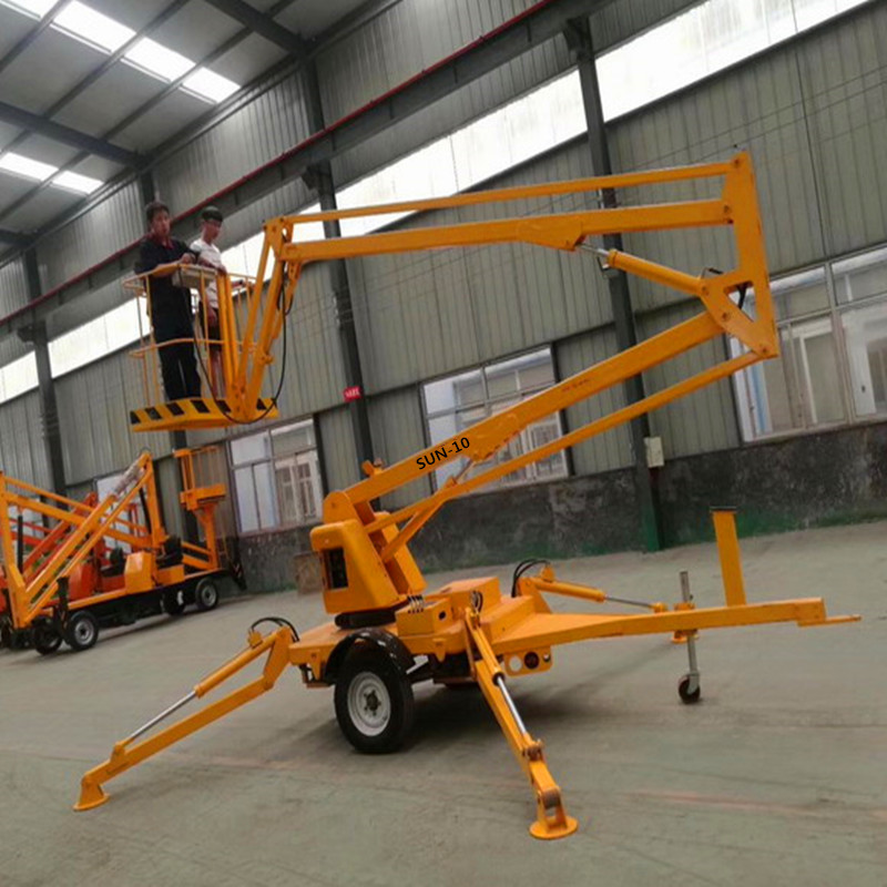 折臂式升降機(jī),是一種360°旋轉(zhuǎn)升降送行人或貨物的液壓升降工具。折臂式升降機(jī)具有移動(dòng)方便、操作簡單、作業(yè)面大、平衡性能好等特點(diǎn),在路面不平的情況下,即能四腿同時(shí)支撐,也可單腿支撐,便于操作使用,因而廣泛用于車站、碼頭、公共建筑等需從事高空作業(yè)的行業(yè)和領(lǐng)域。 折臂式高空作業(yè)車廣泛適用于市政、電力、路燈、廣告、通訊、攝影、園林、交通、碼頭、機(jī)場港口、大型工礦企業(yè)等行業(yè)的安裝維修及登高作業(yè)。 適用于野外各種崎嶇地形,空間作業(yè)范圍廣,主要用于建筑,橋梁建設(shè)、船舶制造、機(jī)場、礦山、港口碼頭、通信和電力設(shè)施的施工及戶外廣告的工程機(jī)械設(shè)備。 柴油折臂式升降機(jī):不用外接電源,適合野外高空架設(shè)作業(yè),用柴油機(jī)動(dòng)力驅(qū)動(dòng)行走及升降,動(dòng)力大,行走速度快。 拖車折臂式升降機(jī):可以掛在汽車上,與汽車同步,適合野外高空作業(yè)。 升降方式: 1.用380-220V電源; 2.用電源不方便,可以用電瓶驅(qū)動(dòng)升降。外型美觀,行走方便。 |